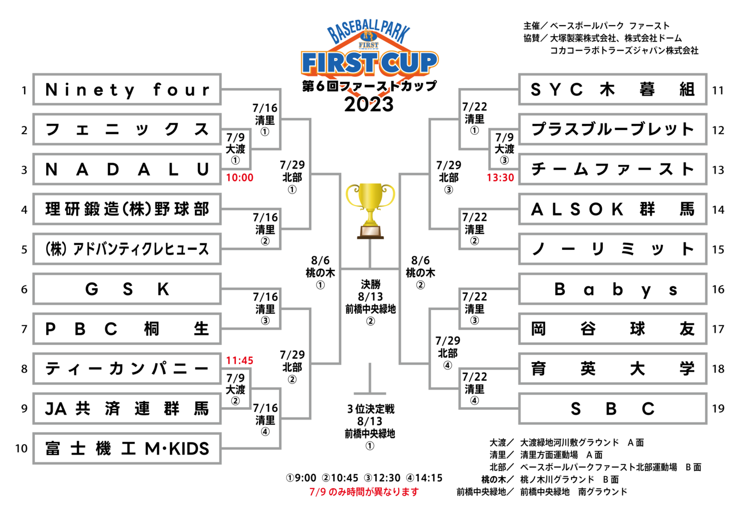 | 場所 | 前橋中央緑地南グラウンド (旧前橋商業高校硬式野球部グラウンド) 群馬県前橋市石倉町4-19 ※雨天・冬期はベースボールパークファーストで行います |