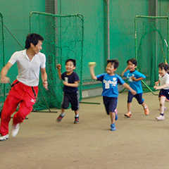 ● 指導内容: 野球・ゴルフ・サッカー・バスケットボールなど、様々なスポーツや運動に慣れ親しむ。その中で、「投げる」「捕る」「打つ」「走る」「跳ぶ」「バランス感覚」「柔軟性」など、あらゆるスポーツに欠かせない動きを運動や遊びを通じて楽しく身につけていきます。