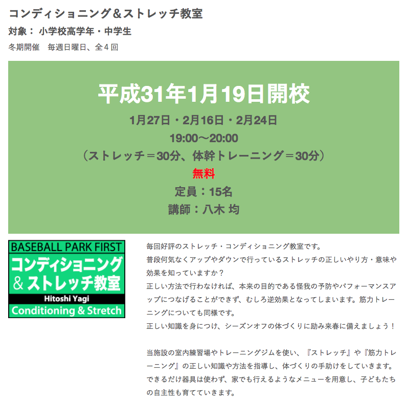 | 野球塾 @ 木曜 クラスと料金のお知らせ | |||||