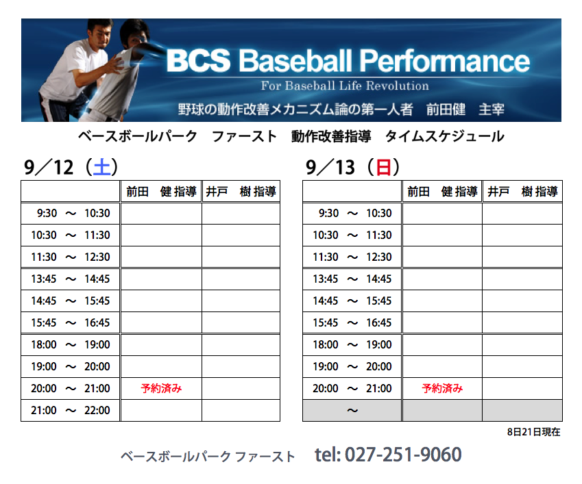 | 野球塾 @ 火曜 クラスと料金のお知らせ | |||||