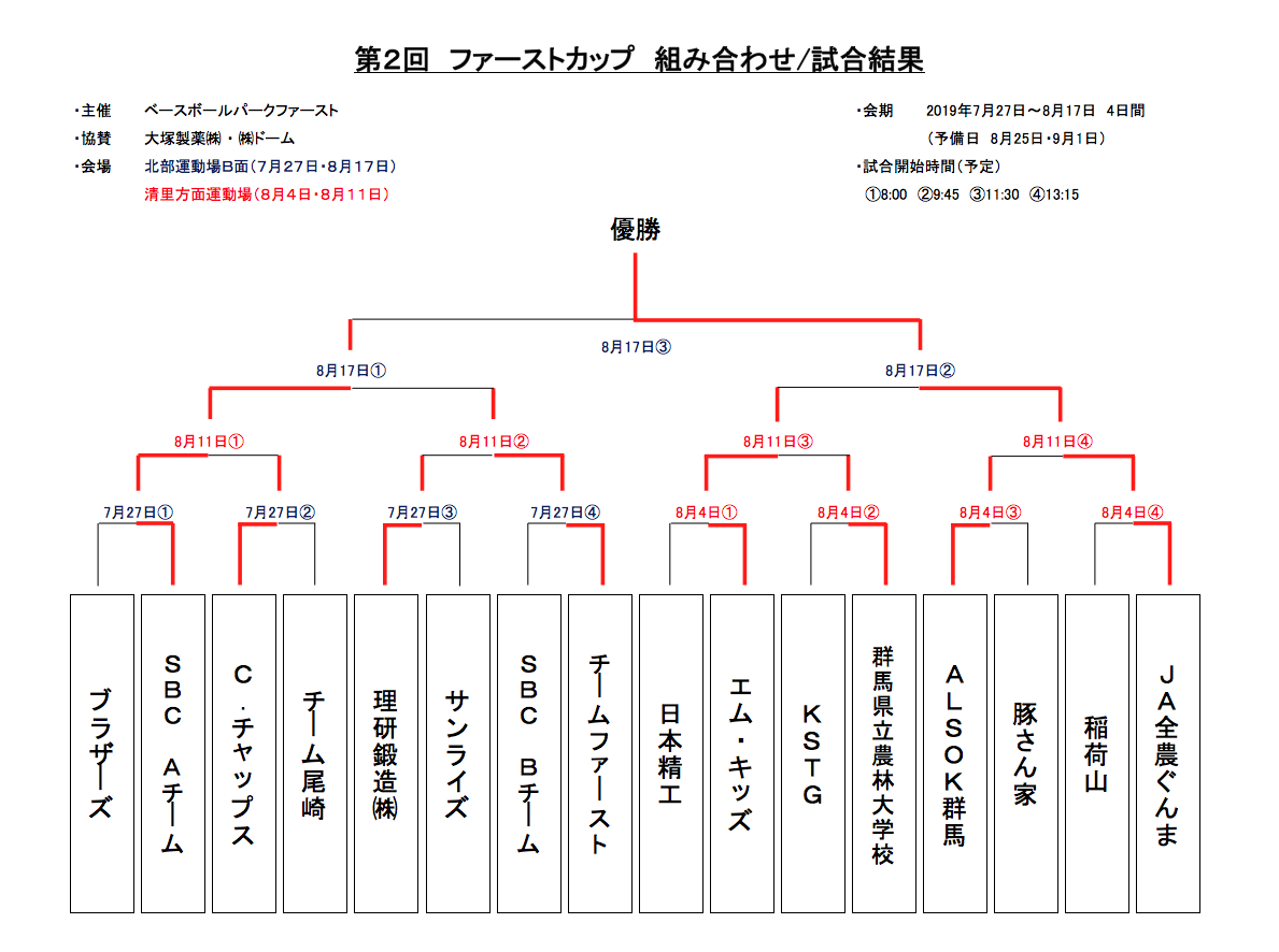 | 場所 | 前橋北部運動場 B面 群馬県前橋市上細井町2127-4 清里方面運動場 群馬県前橋市青梨子町591(8月16日のみ) |