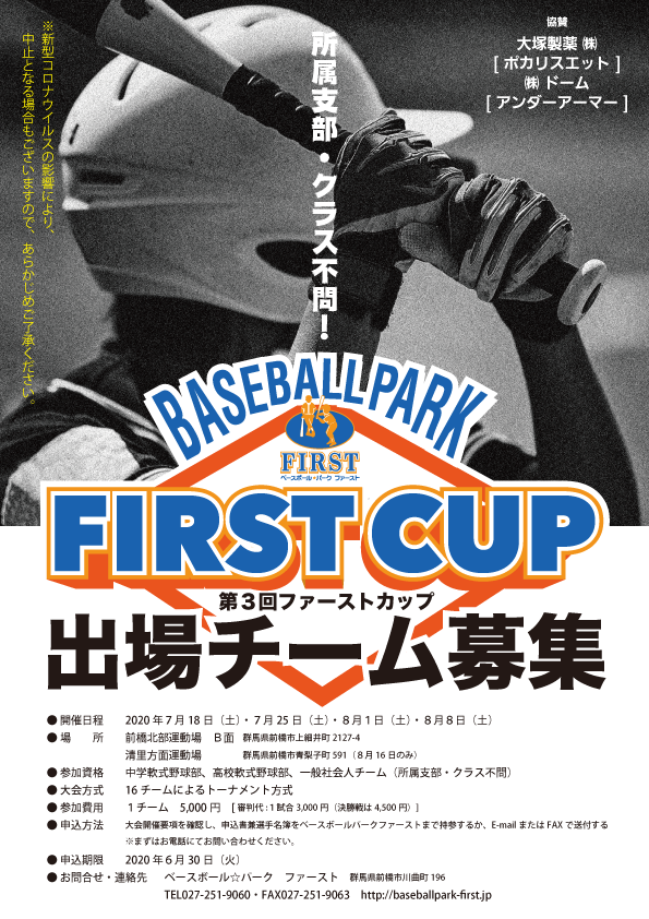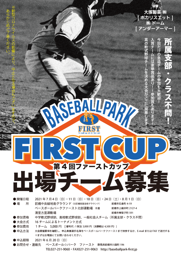 群馬県前橋市にありますバッティングセンター『ベースボールパークファースト』主催の大会を今年も開催いたします。