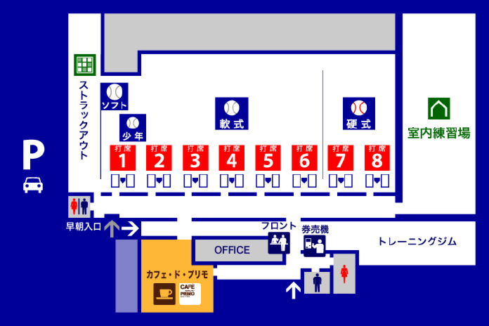 ●左打席+右打席。女性の方でもお気軽に挑戦できます。フォームの調整や見直しに最適のマシンです。
