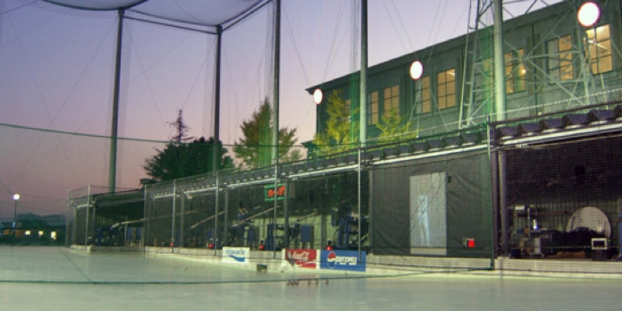 ●左打席+右打席。通常のマシンより15cm高い位置よりの投球です。高いリリースポイントから角度が付いて入ってきますので、打ち難く多少手こずるかもしれませんが、練習にはなります。
