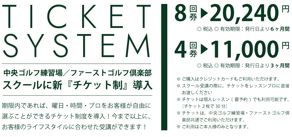 「スクール」「個人レッスン」「ジュニア」「初心者」「ラウンドレッスン」など